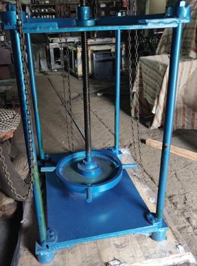 in below video a special High Height Press was made with the rotating wheel attached to the plate moving up or down plate to easy handle the wheel hight.